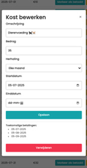 Voeg eenvoudig je vaste lasten en inkomsten toe, gekoppeld aan een datum. Zo heb je altijd overzicht.